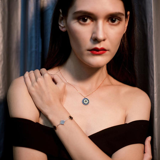 Sterling Silver Necklace with Blue Zircon Evil Eye Pendant
