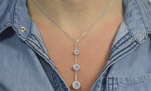 Triple Embellished Necklace with Crystal Balls in 18K White